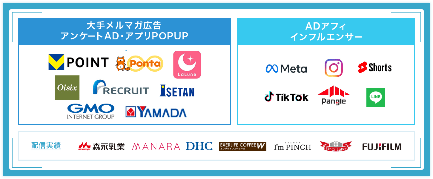 注)ADアフィ、インフルエンサーも一部お取り扱いがあります。 注)ADアフィ、インフルエンサーも一部お取り扱いがあります。